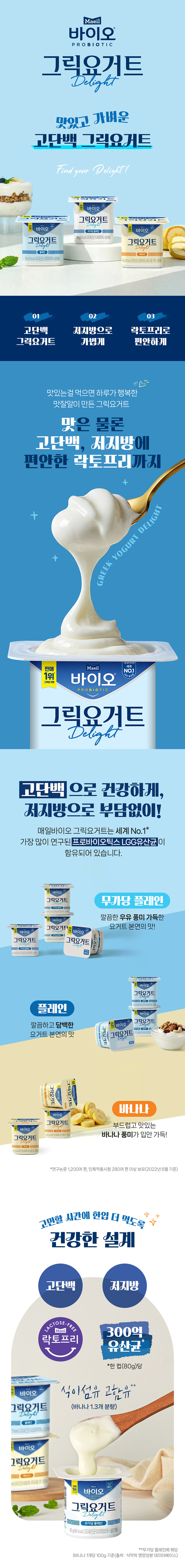[매일바이오 그릭요거트 Delight 무가당 플레인 80g 16개입] 무가당에 저지방, 락토프리까지! 그릭요거트 중 가장 기대됩니다! 그래놀라에 같이 먹어도 맛날거같아요!