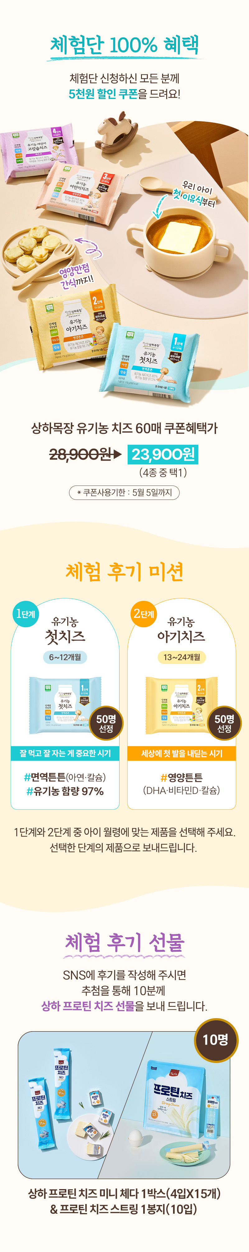 [상하목장 1단계 유기농 첫치즈 10매*4입 (50명)] 부족하지만 제가 체험단을 운영중입니다.