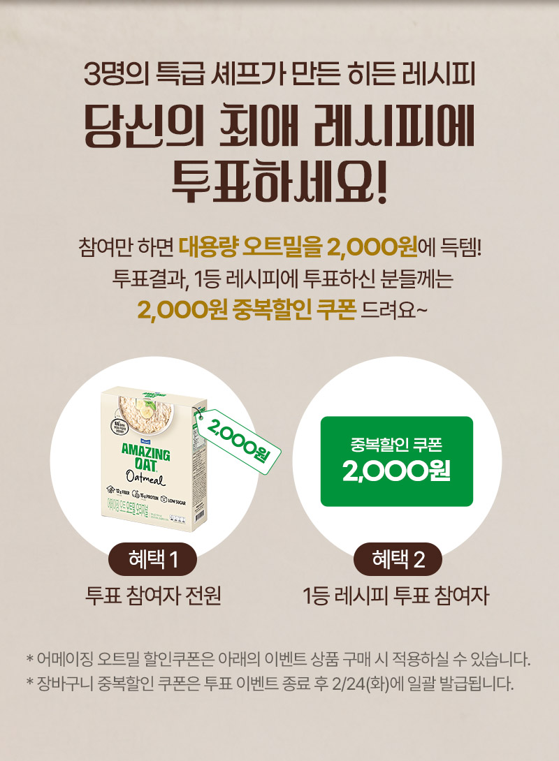 1등 레시피에 투표해 주신 고객님들께는
