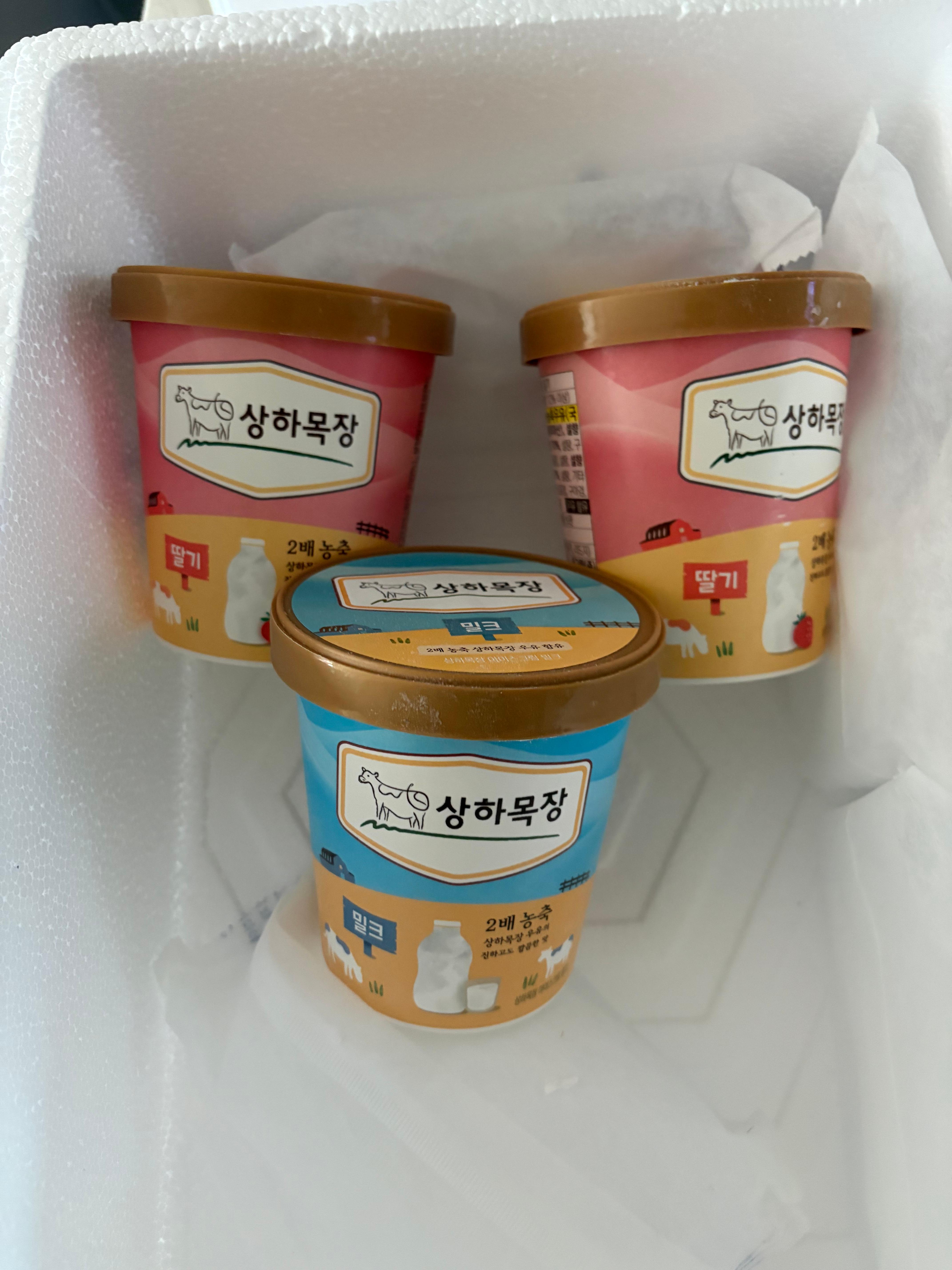 상하목장 아이스크림 파인트 474ml 냉동 3개 (딸기 1개 + 밀크 2개)