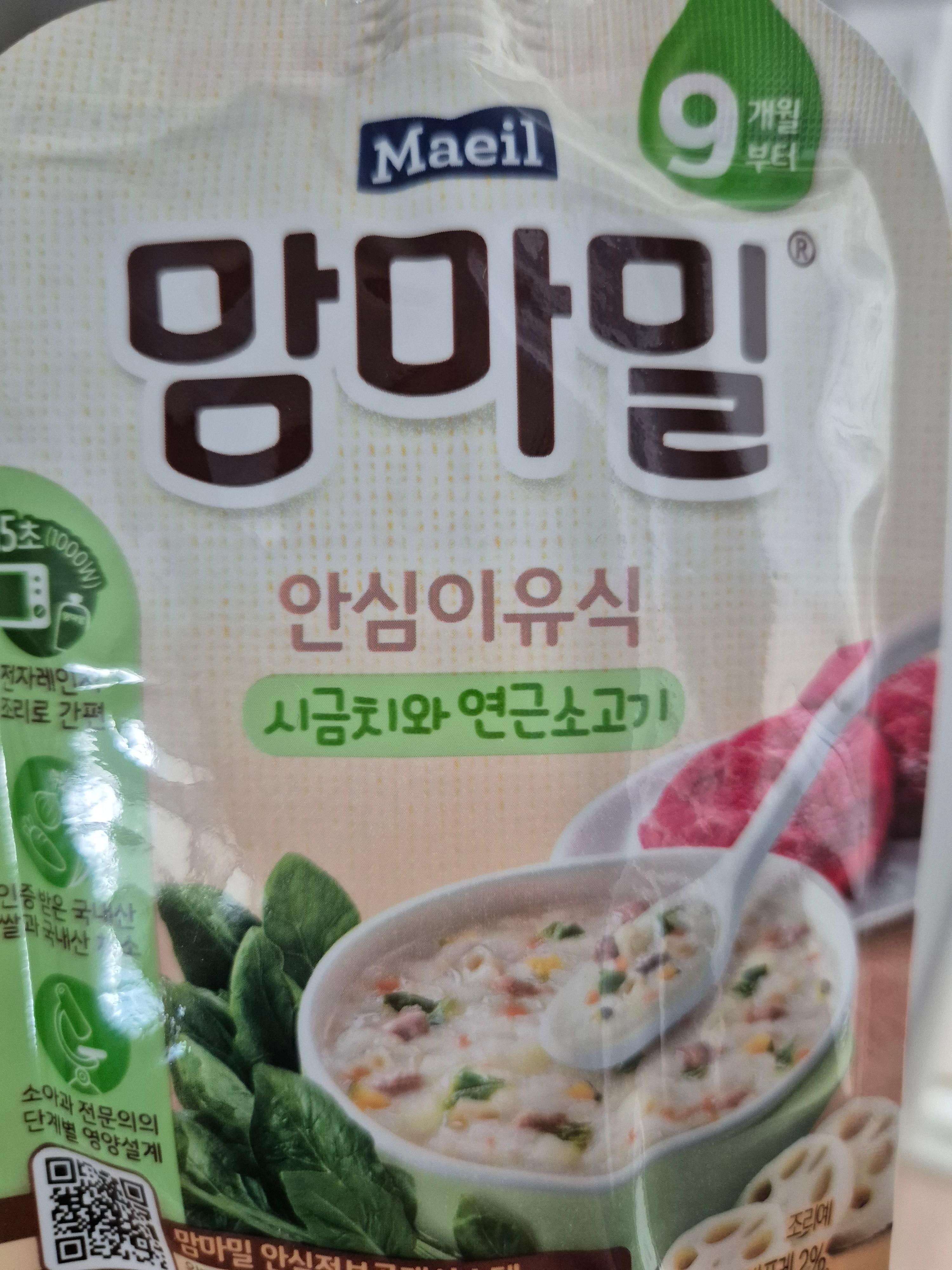 맘마밀 안심이유식 2종 100g 20팩 (녹황채소와 소고기 10팩 + 시금치와 연근 10팩)
