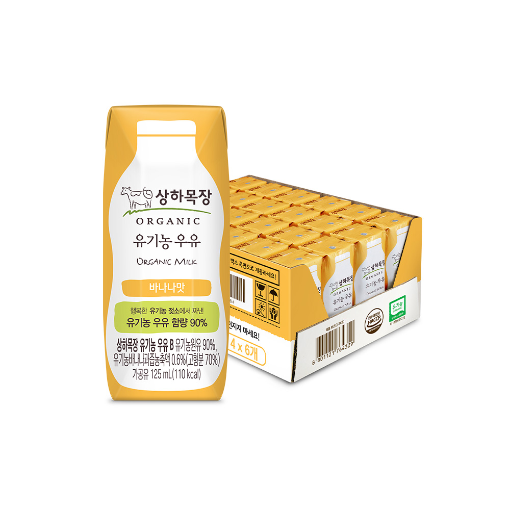 [증정] 상하목장 유기농 바나나 우유 125ml 24팩 + 코코아 우유 4팩