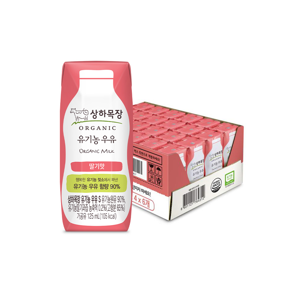 상하목장 유기농 우유 125ml 24팩+딸기우유 125ml 24팩