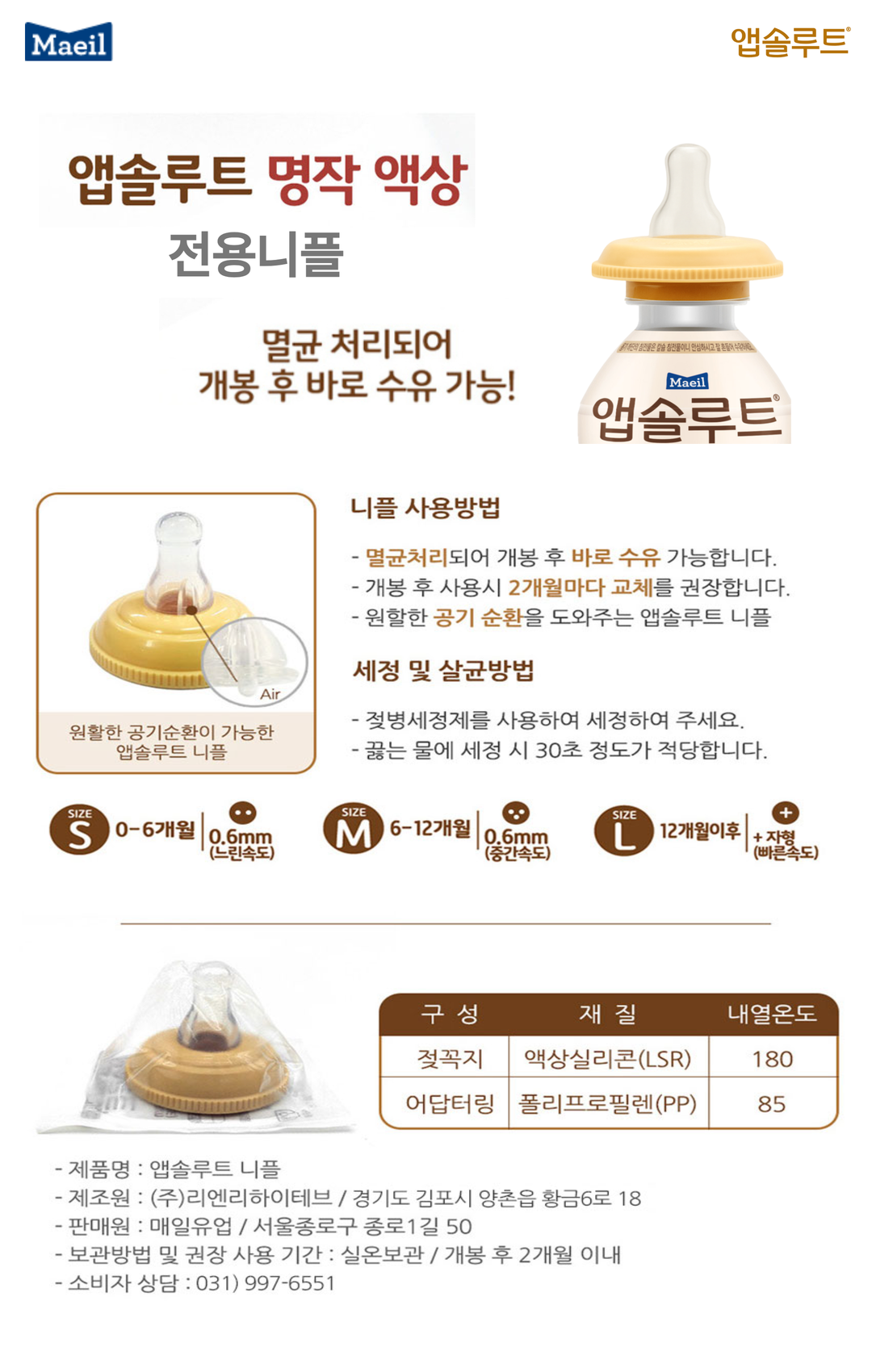 명작액상전용 니플 S단계 (0-6개월) 5개 *제품미포함