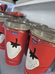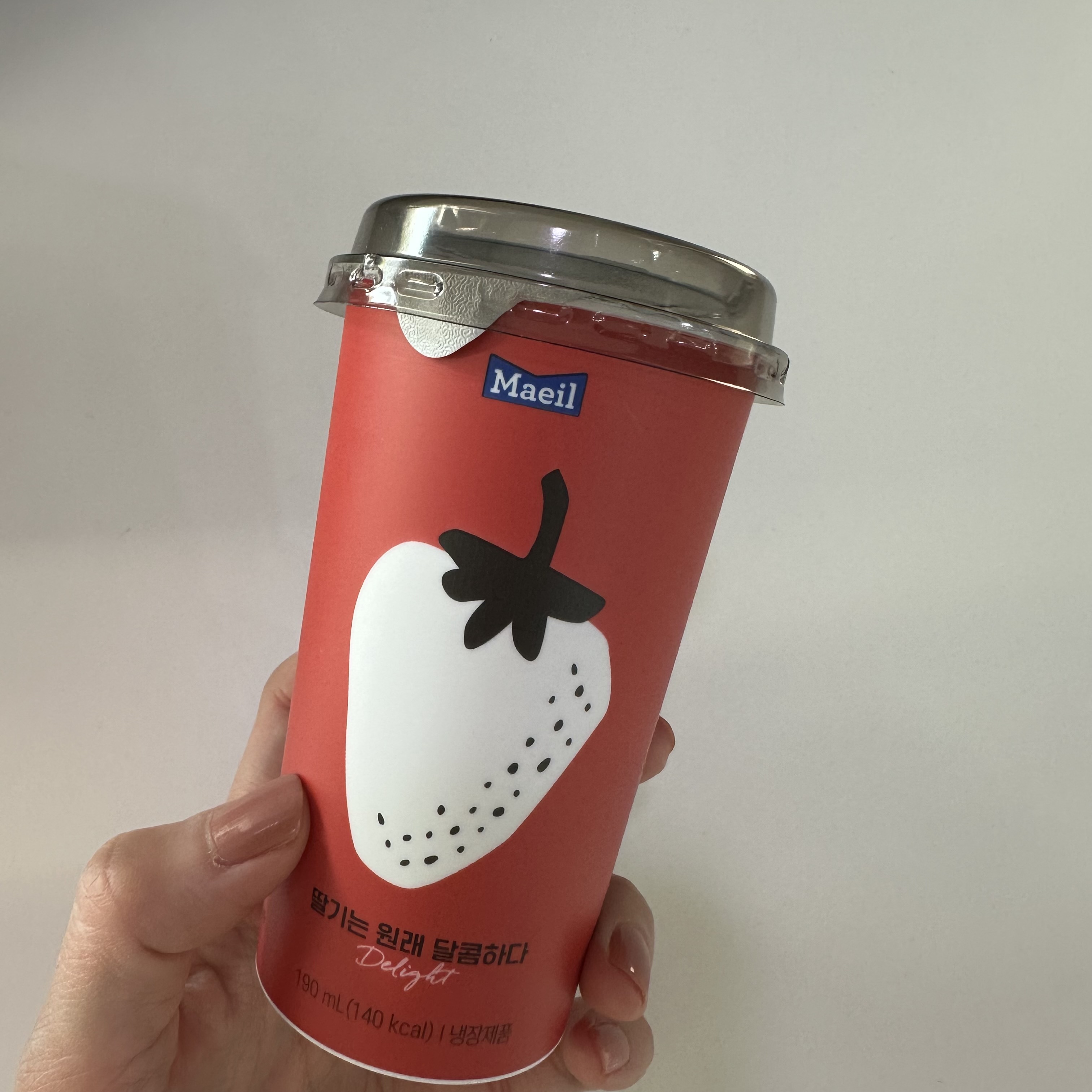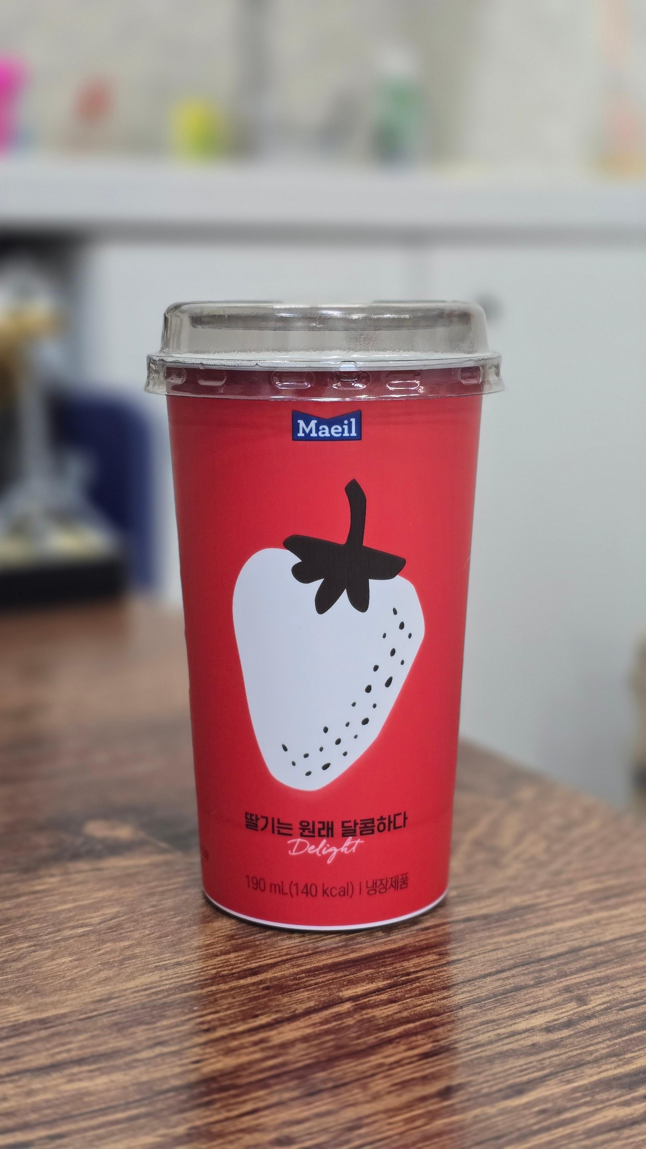 냉장고 속 필수템 컵 딸기우유🍓