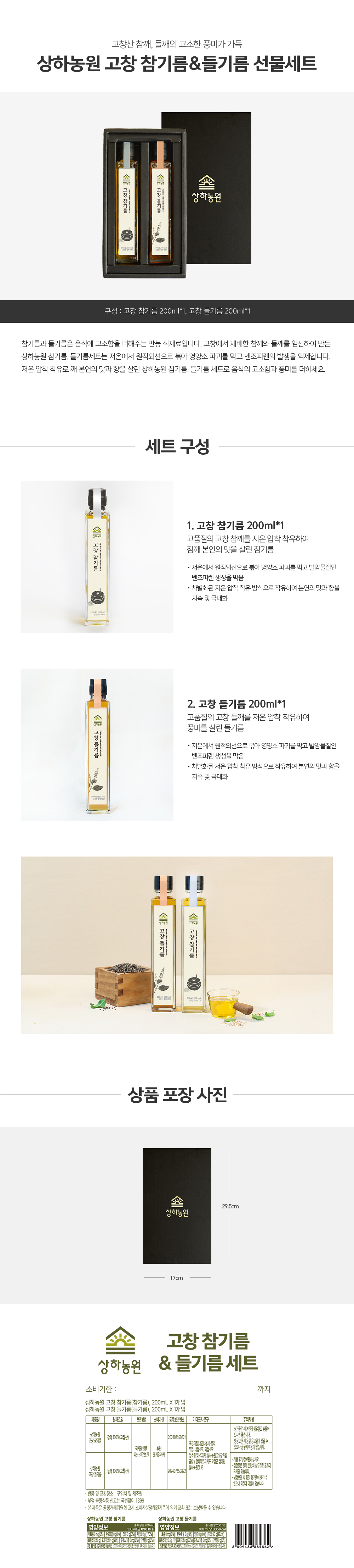 [1/19 순차출고] 상하농원 참기름들기름 참깨세트