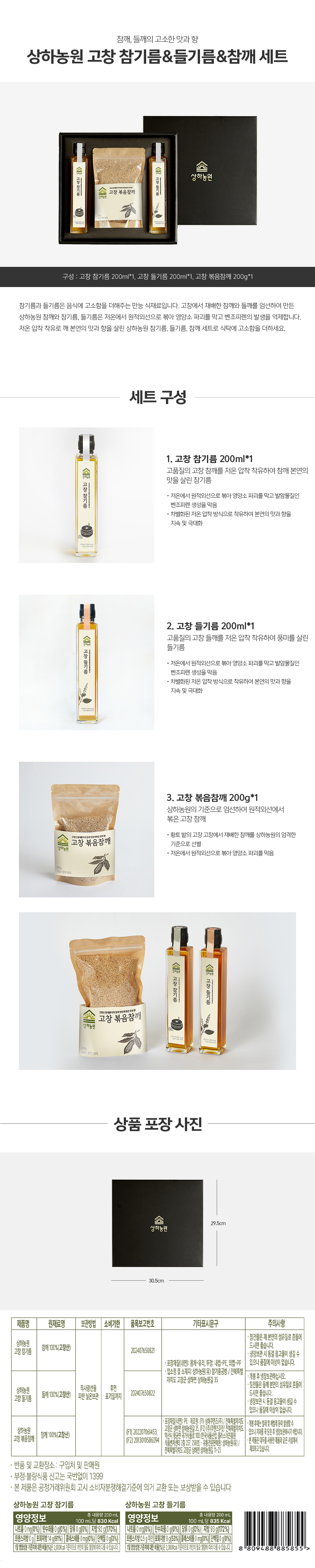[1/19 순차출고] 상하농원 참기름들기름 참깨세트