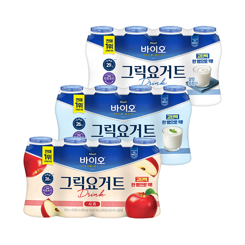 매일바이오 그릭요거트 드링크 150ml 총12개 (사과4개 + 플레인4개 + 무가당 플레인4개)