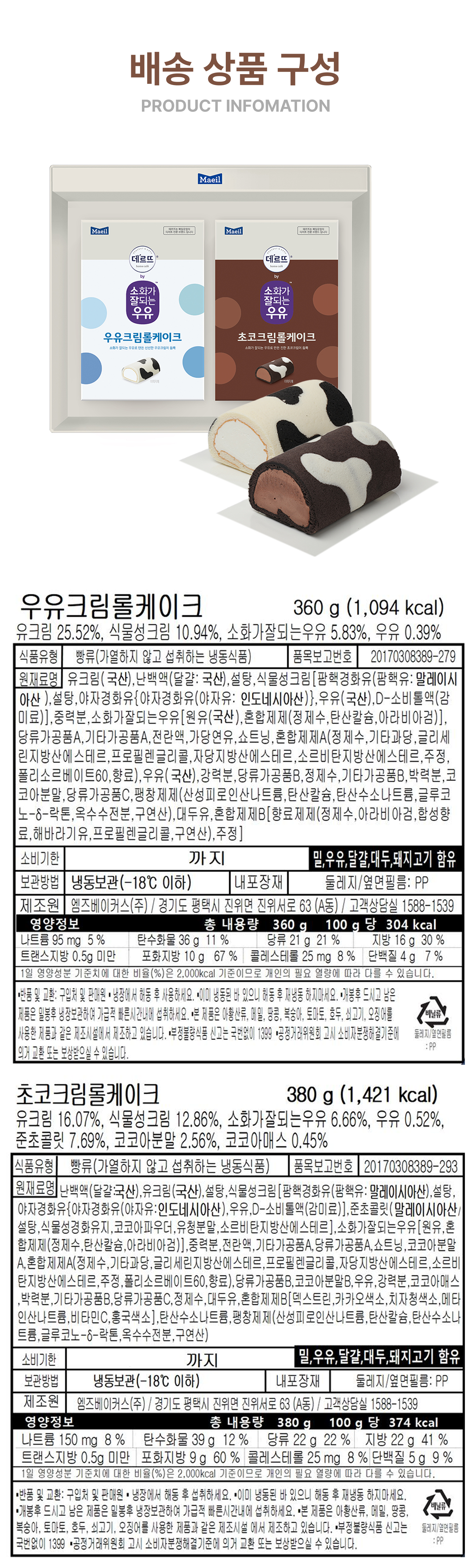 데르뜨 롤케이크 선물세트 (소잘 초코1개 + 소잘 우유 1개)